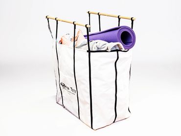 Discover our patent-pending design. We've combined a rigid handle, a rigid bottom with strapping all the way around and all across the length of the bag for a balanced carry, this jumbo tote bag makes it so much easier to carry the smallest to the largest of loads.